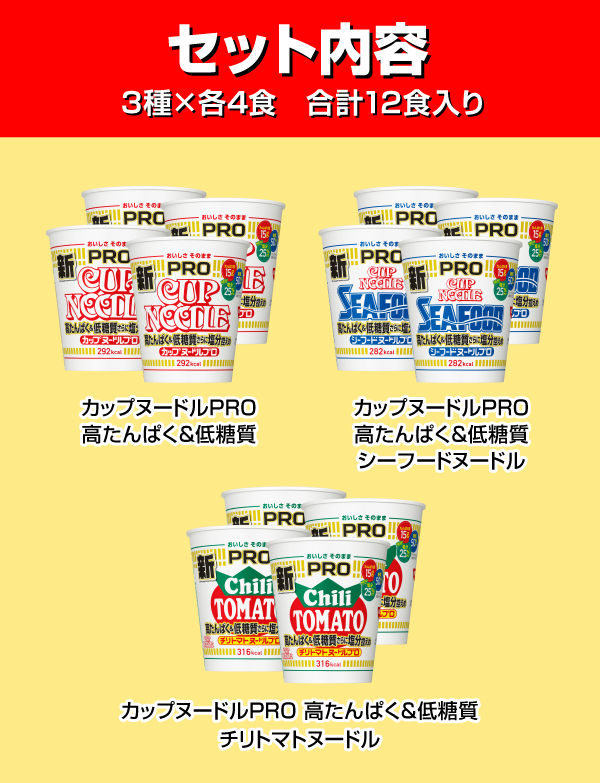 ・カップヌードルPRO 高たんぱく&低糖質さらに塩分控えめ チリトマトヌードル ×4食