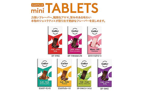 チョコレート本来の味が楽しめる7種類のミニタブレットアソート