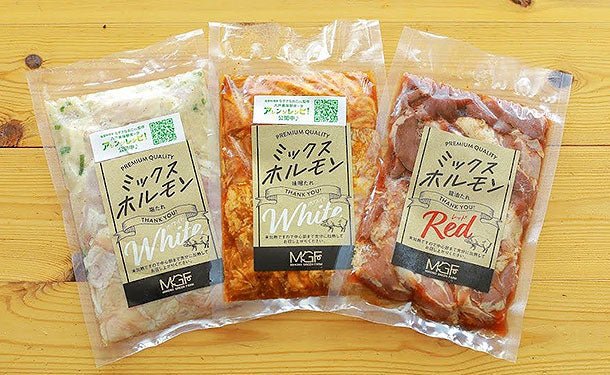 3種の味比べができるホルモンセット自慢のタレで味付けされたミックスホルモンは、焼肉・BBQではこんがりと焼いて。食卓のおかずにはキャベツなどの野菜と一緒に炒めてお召し上がりいただけます。 味噌・醤油・塩 3種の味でお楽しみいただける味付き生ホルモンセットです。