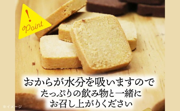 おからは体内で水分を吸収し大きく膨らむため、満腹感が得られ腹持ちもよくなります。個包装なので持ち運びにも便利。好きな時に好きな量だけ食べられるので衛生的。
