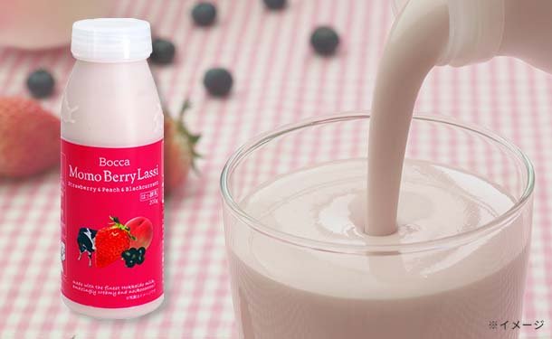 北海道伊達市近郊の生乳を使った「牧家飲むヨーグルト」に、甘酸っぱいいちごと豊かな香りの桃、ブラックカーラント(カシス)のコクと酸味をブレンドしたフルーティーなドリンクです。