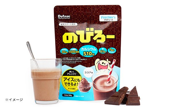 「のびろー」は牛乳150mlに12g(大さじ約すり切り2杯)を混ぜて飲む、粉末状の成長サポート飲料です。