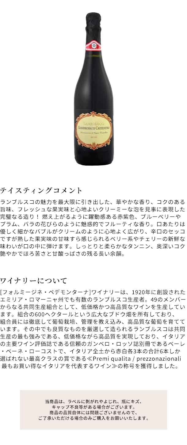 イタリア産 赤泡「ランブルスコ・グラスパロッサ・ディ・カステルヴェトロ」750ml
