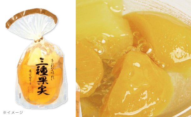 色どり豊かな国産果実(黄桃・みかん・パインアップル)を、やわらかゼリーで包み込みました。