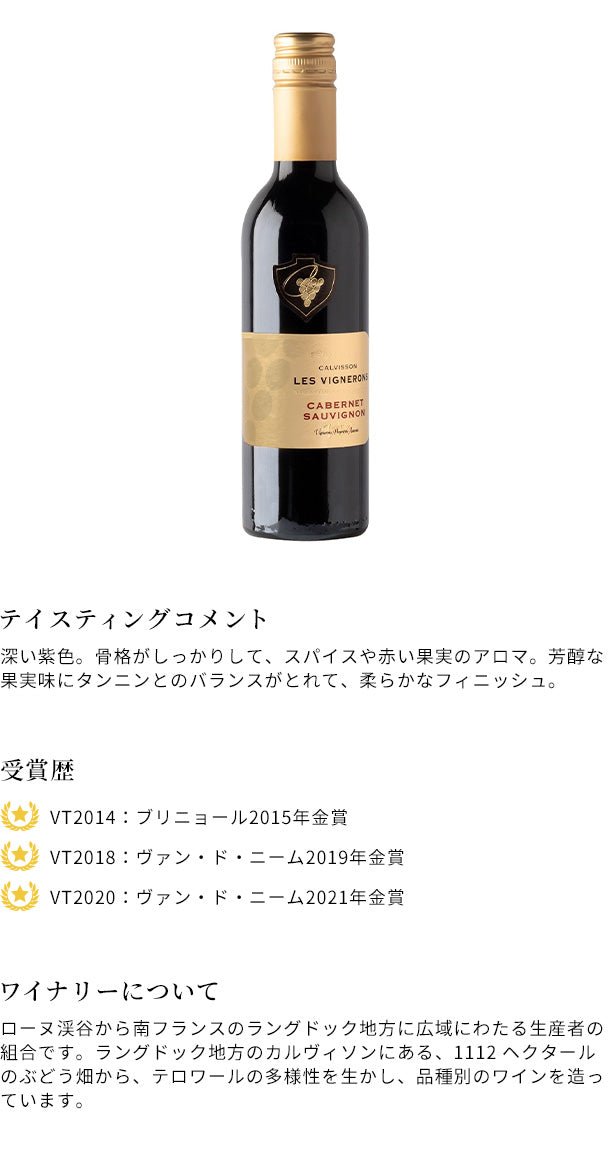 フランス産 赤「カルヴィソン レ ヴィニュロン カベルネ・ソーヴィニヨン」375ml