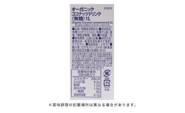 ビオセボン「オーガニックココナッツドリンク(無糖)」1L