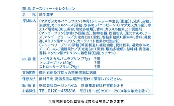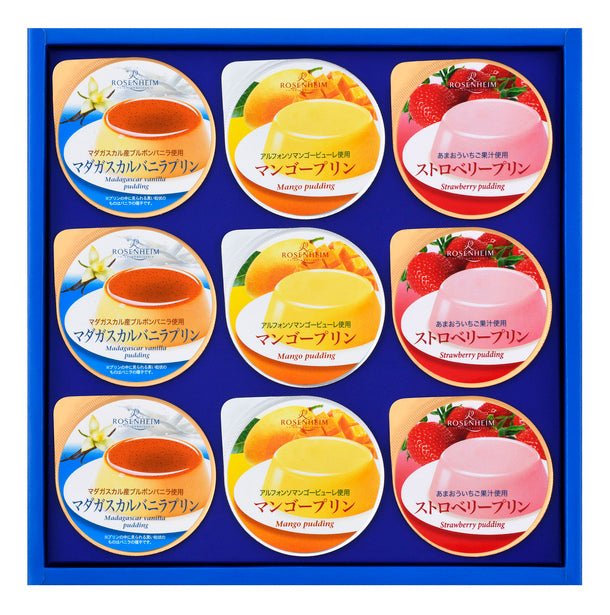 ローゼンハイムの人気プリン3種類の詰め合わせ。