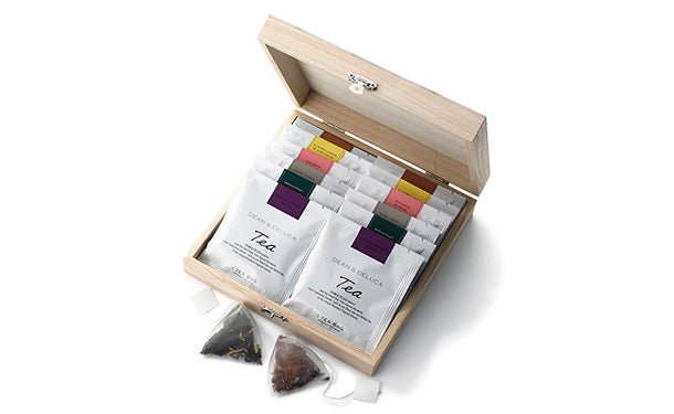 ティーセレクション木箱入り6種類の味わいがたのしめる、木箱入りのティーギフトDEAN & DELUCAで人気のティーバッグをウッドボックスに詰めたギフトセット。