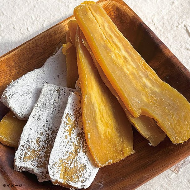 さつまいもの水分が低下した際に発生する「シロタ」、干し芋の表面にさつまいもの糖分である麦芽糖が再結晶化し粉を吹きしろくなったもの、スジが入ったものなど訳ありほし芋を中心に「お得な大容量」サイズでご用意致しました。甘味は控えめです。