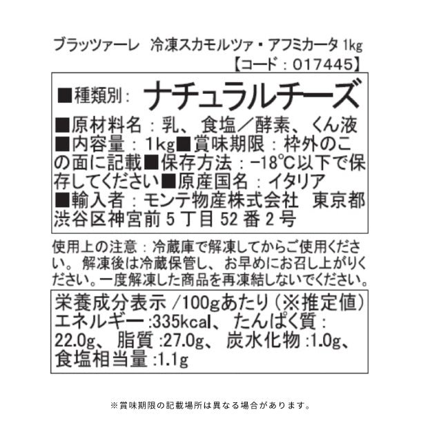 燻製の香りが口いっぱいに広がるスカモルツァチーズです。厚めにスライスして、フライパンで焼いても美味しく召し上がれます。