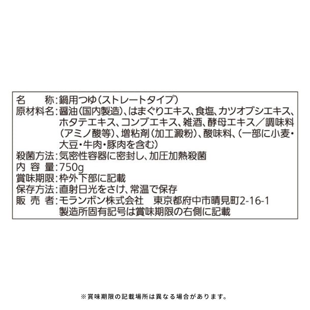 はまぐりだしに、かつお節・ほたて・昆布の旨みを効かせた、「だし」にこだわった寄せ鍋つゆです。うすくち醤油の上品でまろやかな味わいをお楽しみください。